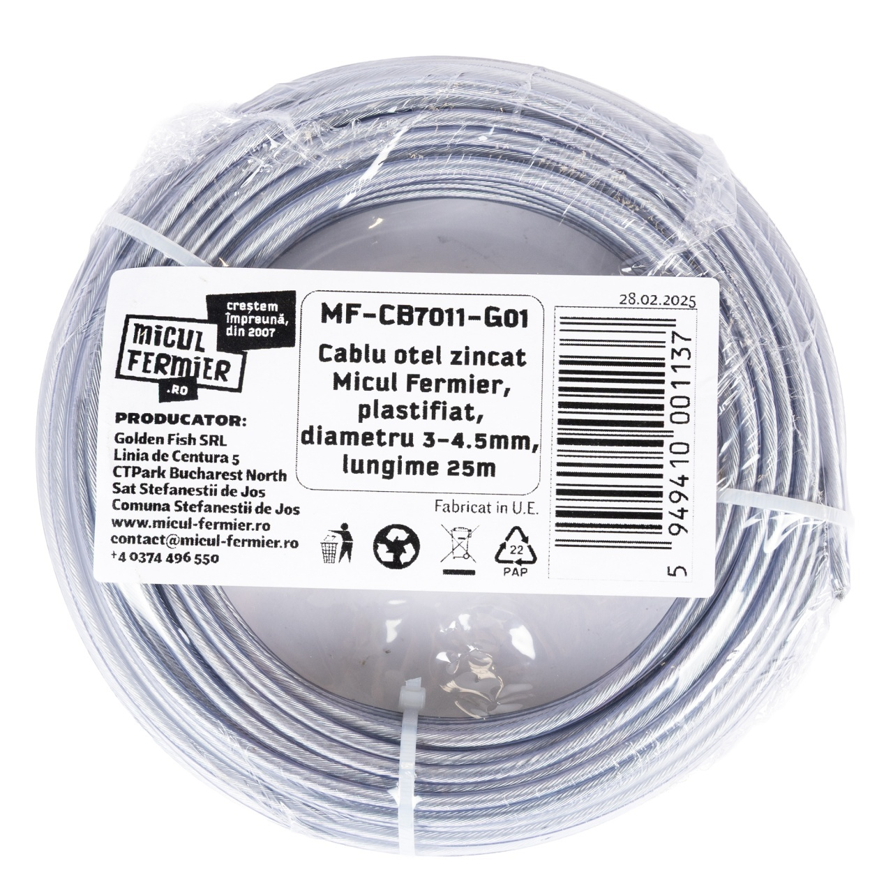 Cablu otel zincat Micul Fermier, plastifiat, diametru 3-4.5mm, lungime 25m