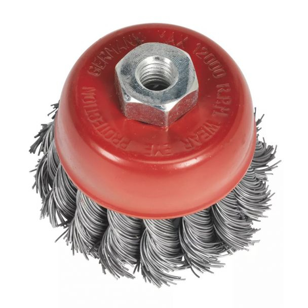 Perie oala (cupa) toronata D125mm, prindere M14x2 otel, grosime fir 0.5mm, lungimea 20mm