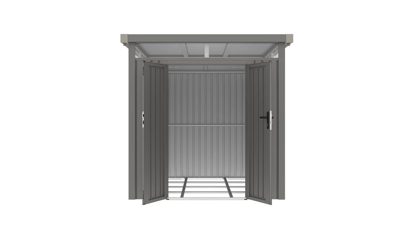 Căsuța de grădină premium metalică, KLUGMEISTER Anna-B Gri Aluminiu, dispune de o ușă cu două canaturi, care poate fi încuiată, oferind astfel o modalitate sigură și confortabilă de păstrare a uneltelor în siguranță. Ușa dublă de acces are o înălțime de 178 cm, iar deschiderea cu ambele uși deschise este de 106 cm, caracteristici ce oferă un spațiu generos pentru intrarea sau ieșirea în și din casuță. Balamalele ușilor sunt de înaltă calitate și, de asemenea, dispune de mâner care, prin utilizarea cheilor conținute în pachet, pot asigura încuierea ușilor mărind siguranța de depozitare.