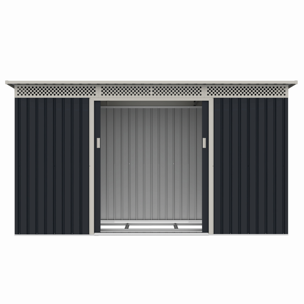 Pentru un plus de funcÈ›ionalitate, căsuÈ›a dispune de sistemul de ventilaÈ›ie, care menÈ›in aerul proaspăt la interior È™i protejează obiectele împotriva umezelii sau mucegaiului. Totodată, este prevăzută cu bază metalică de montaj, ce oferă stabilitate suplimentară. Podeaua nu este inclusă, însă această bază vă permite să alegeÈ›i materialul cel mai potrivit – lemn, beton sau plăci compozite – în funcÈ›ie de stilul È™i necesitățile grădinii.