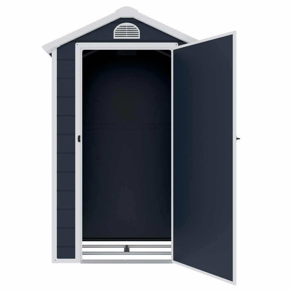 Construcția solidă, ranforsată cu metal, oferă stabilitate și rezistență sporită. Acoperișul robust protejează eficient împotriva condițiilor meteorologice variate, de la ploi și ninsoare la vânt puternic sau radiații solare. Accesul este facil datorită ușii cu balamale, cu o lățime de 73 cm și o înălțime de 172 cm, dimensiuni care permit introducerea și manipularea confortabilă a obiectelor voluminoase.