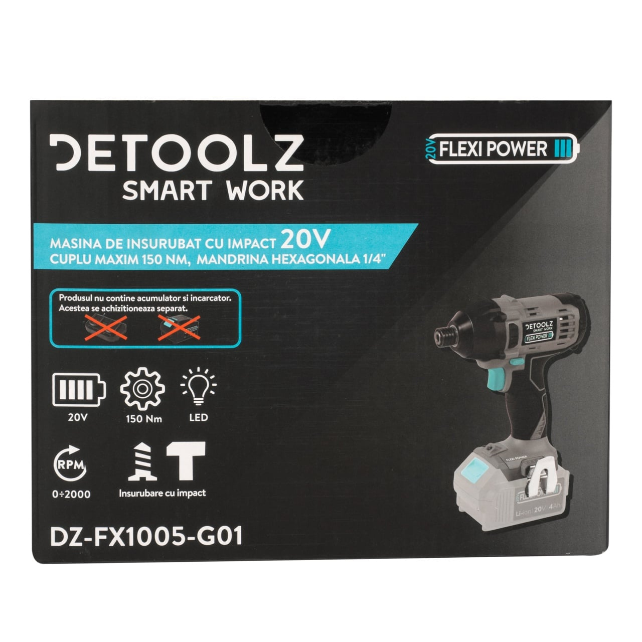 Echipată cu mandrină rapidă 1/4” hex, lumina LED pentru vizibilitate sporită și clemă metalică pentru curea, oferă eficiență și portabilitate în orice mediul de lucru. Funcționează cu acumulatori 20V din gama Detoolz, fiind compatibilă cu întreaga linie de accesorii și încărcătoare dedicate.