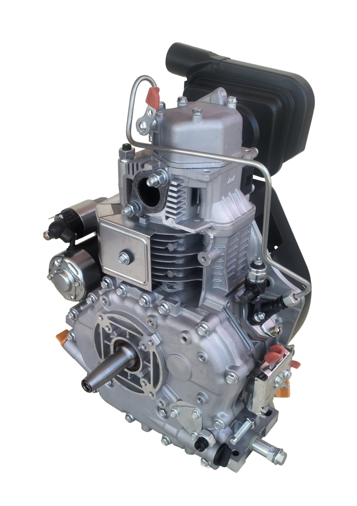 Descriere: Tip motor: monocilindru vertical, racire cu aer, 4 timpi, injectie directa, aspiratie naturala Alezaj x cursa: 92x75mm Capacitate cilindrica: 499cmc Rata de compresie 19.5:1 Putere nominala: 7.5kW Putere maxima: 8.2kW Sistem pornire: electric Tip arbore iesire: conic Tip con: inaltime con 35mm, confectionat pe ax cu diametrul de 26mm si lungimea totala de 73mm Sens rotatie: antiorar (cu fata la arbore) Tip filtru aer: uscat Tip combustibil: diesel Capacitate rezervor (neinclus in setul de livrare): 5.5 litri Capacitate sistem lubrifiere: 1.65 litri Dimensiuni: 42x40x50cm Greutate neta: 45kg