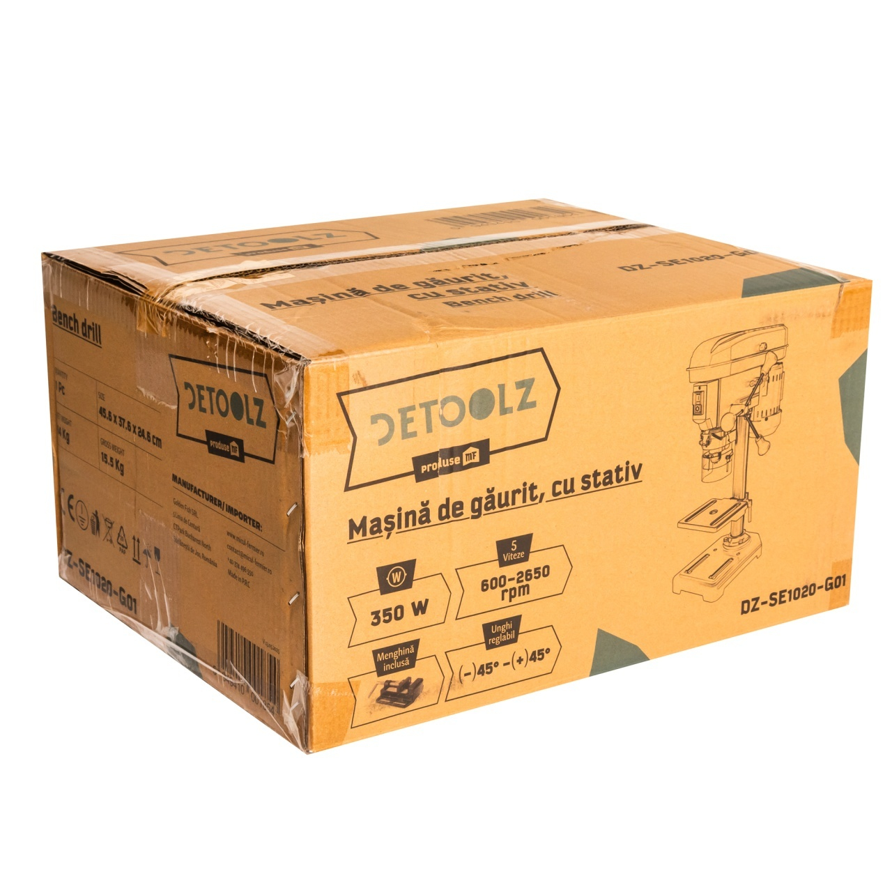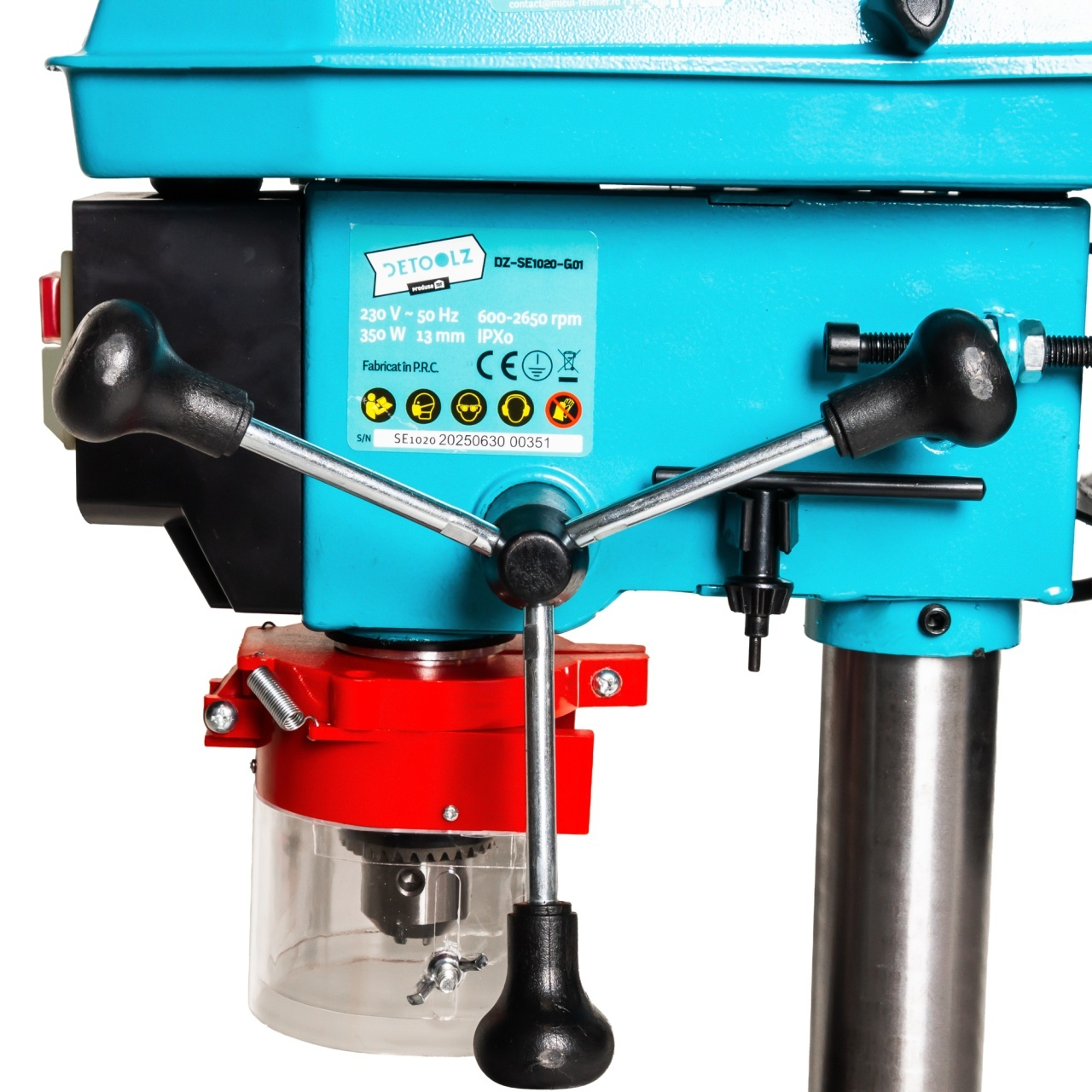 Mașina de găurit Detoolz 350W cu coloană este un echipament robust și precis, ideală pentru ateliere, tâmplărie, lucrări de hobby sau uz semi-profesional. Cu o putere de 350W, această mașină oferă performanță constantă și precizie ridicată în executarea găurilor în diverse materiale precum lemn, metal sau plastic.