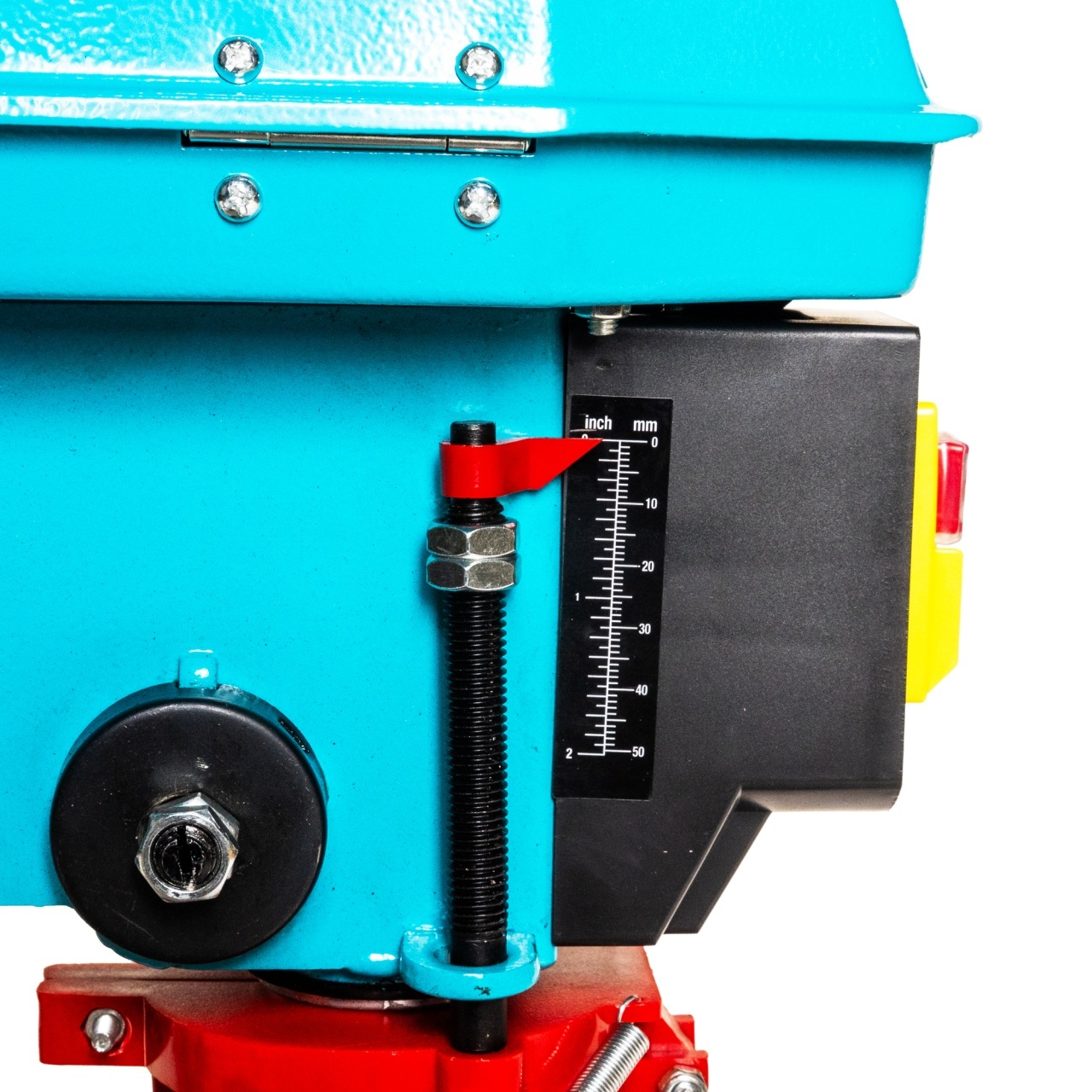 Mașina este echipată cu reglaj de înălțime și limitator de adâncime, permițând realizarea unor găuri exacte și repetabile. Designul compact și construcția durabilă o fac potrivită pentru orice spațiu de lucru.