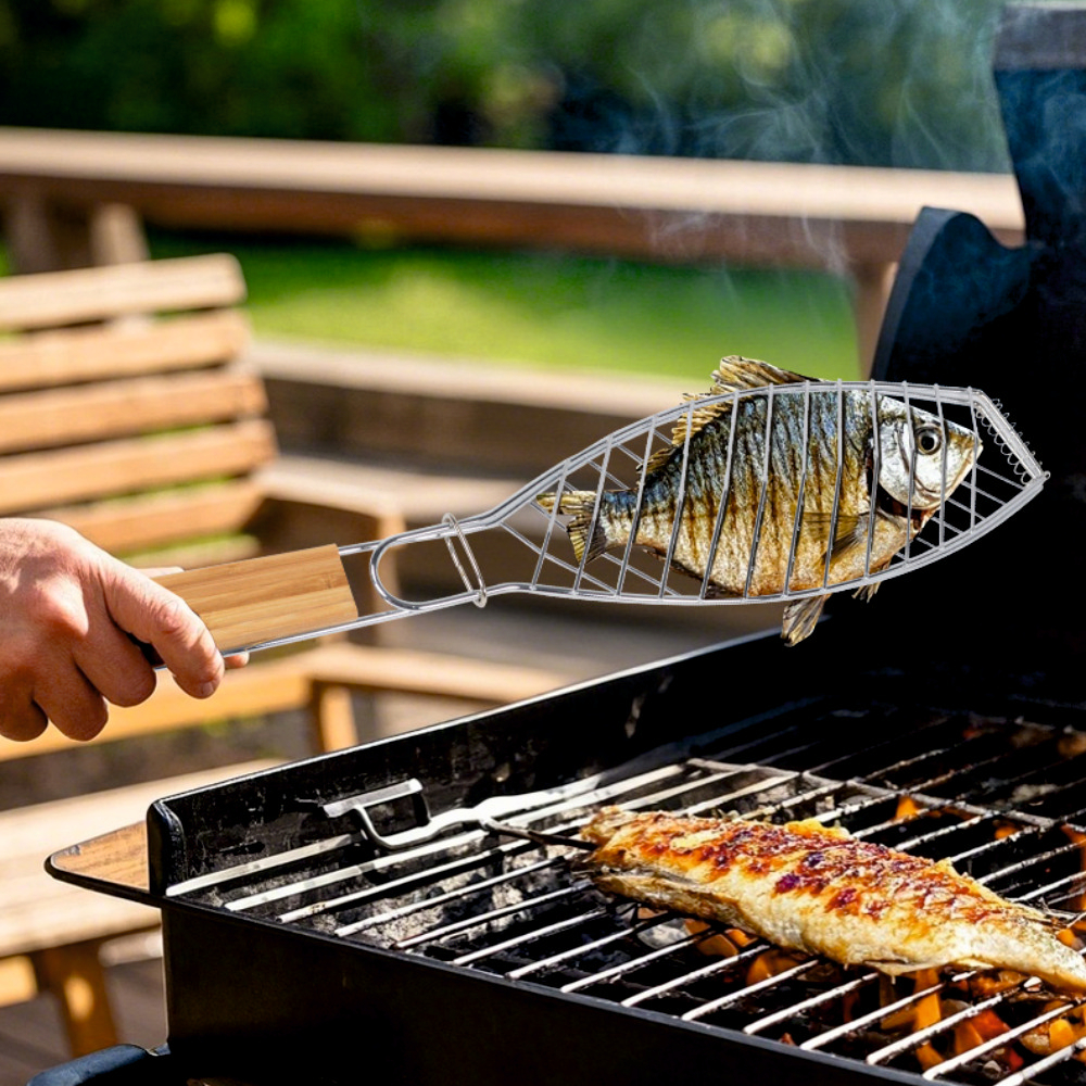 Prindere sigură, manipulare ușoară, gătit fără riscuri . Controlează cu precizie fiecare mișcare la grătar cu suportul pentur peste, un accesoriu esențial pentru orice pasionat de BBQ. Conceput pentru manipularea eficientă a alimentelor la temperaturi ridicate, acest suport este ideal pentru întoarcerea pestelui. Materialul rezistent la temperaturi înalte asigură durabilitate și protecție împotriva ruginii, fiind ideal pentru utilizare frecventă la grătar sau în bucătărie. Lungimea suportului oferă o distanță optimă față de foc, protejând mâinile și brațele în timp ce menții controlul asupra gătitului.