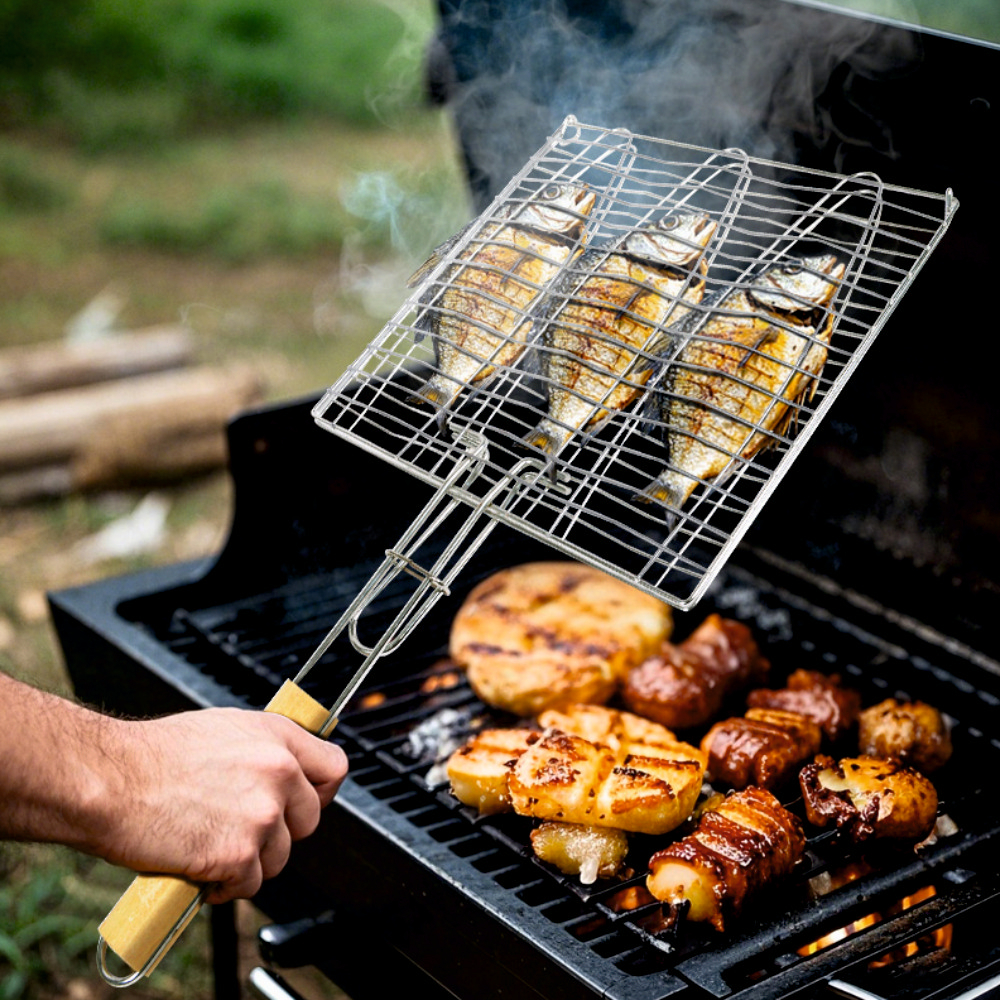 Control precis È™i siguranță în timpul gătitului. Manipulează cu uÈ™urință peÈ™tele pe grătar cu suportul KY3769, un accesoriu esenÈ›ial pentru orice pasionat de barbecue. Construit pentru durabilitate È™i confort, acest suport îți oferă o prindere sigură È™i rezistență la temperaturi înalte – ideal pentru gătit în aer liber sau în bucătărie.