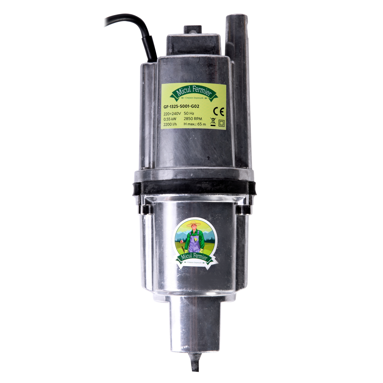 Pompa apa submersibila pe vibratie Micul Fermier GF-1325-S001-G02, cu debit de 2200l/h, este un echipament folosit la transportul apei din puturi, lacuri, bazine, fantani in scopul alimentarii diversilor consumatori.