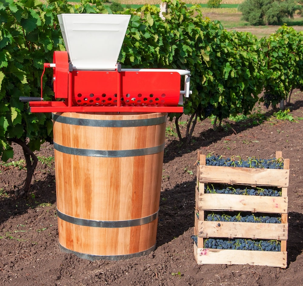 Zdrobitorul de struguri se amplaseaza deasupra butoiului unde se vor colecta strugurii zdrobiti si se invarte manivela. Inainte de utilizare se va spala bine zdrobitorul cu jet de apa.